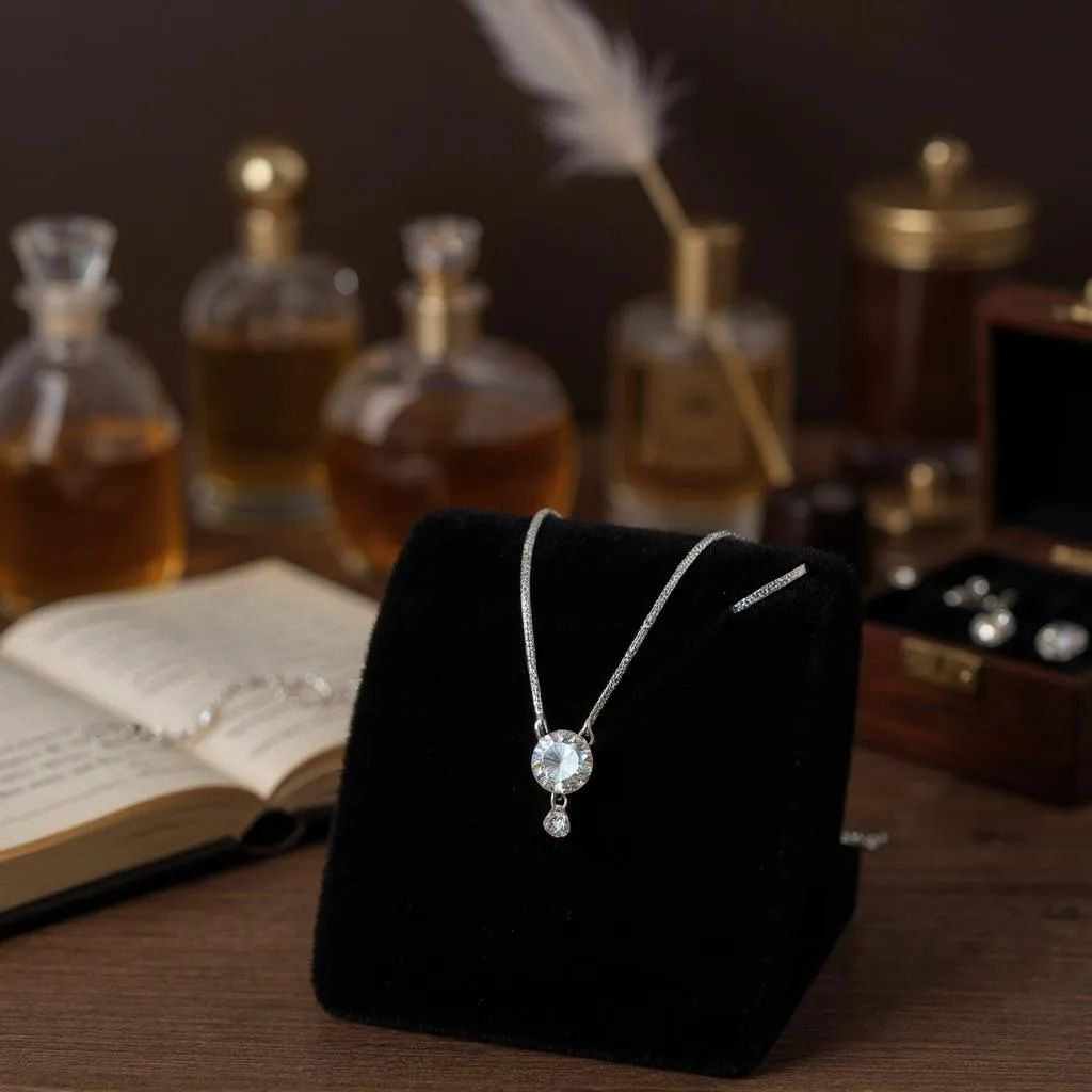 Add a touch of sophisticated sparkle to your everyday style with this elegant necklace. It features a brilliant round-cut cubic zirconia (CZ) as the main focal point, delicately suspended above a smaller, shimmering CZ droplet. Designed to mimic the look of fine jewellery, this imitation piece offers captivating brilliance without the premium price. Perfect for adding a subtle touch of glamour to any outfit or as a thoughtful gift.