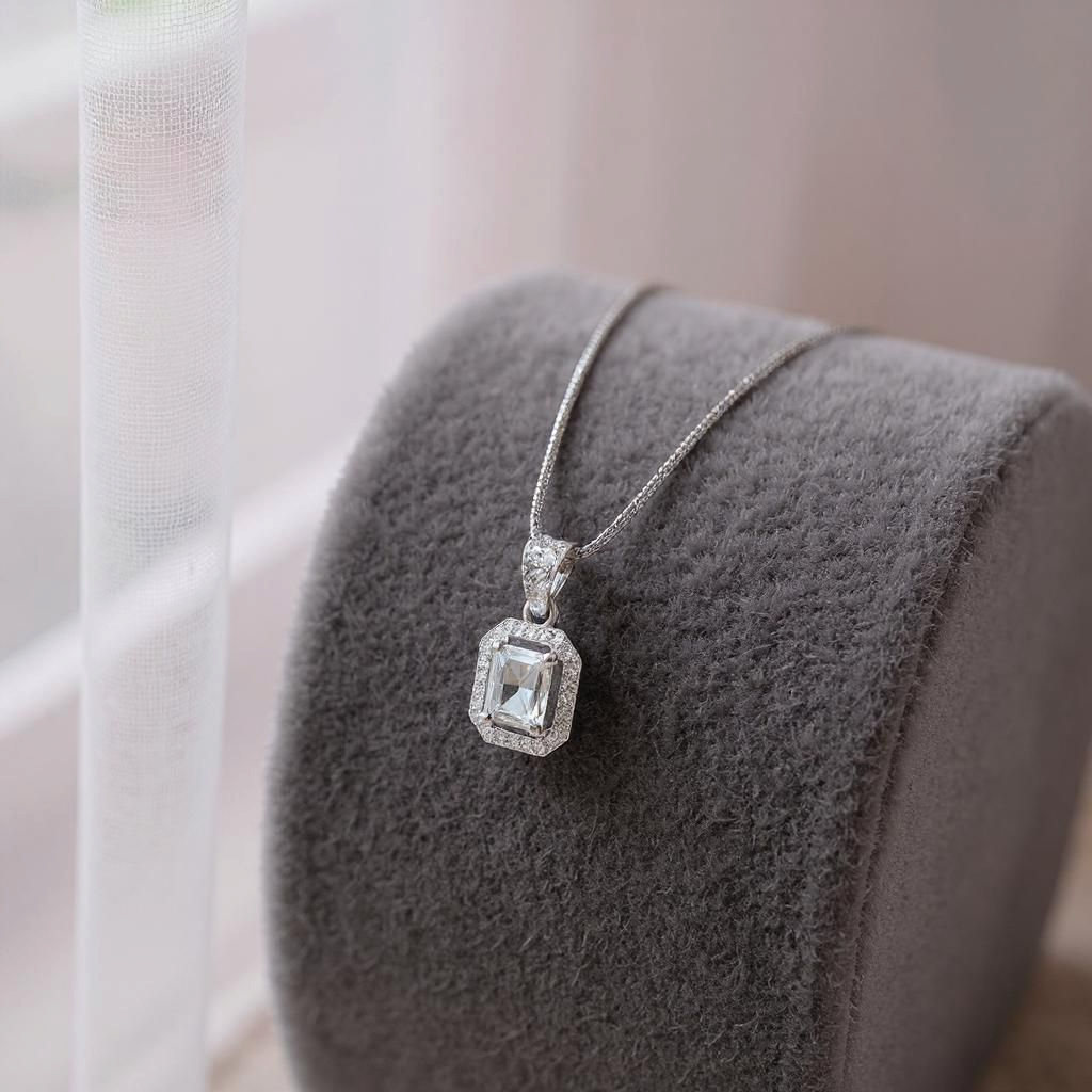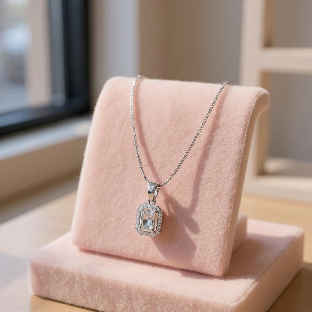 Dazzling Square CZ Halo Pendant Necklace – Everyday Sparkle
