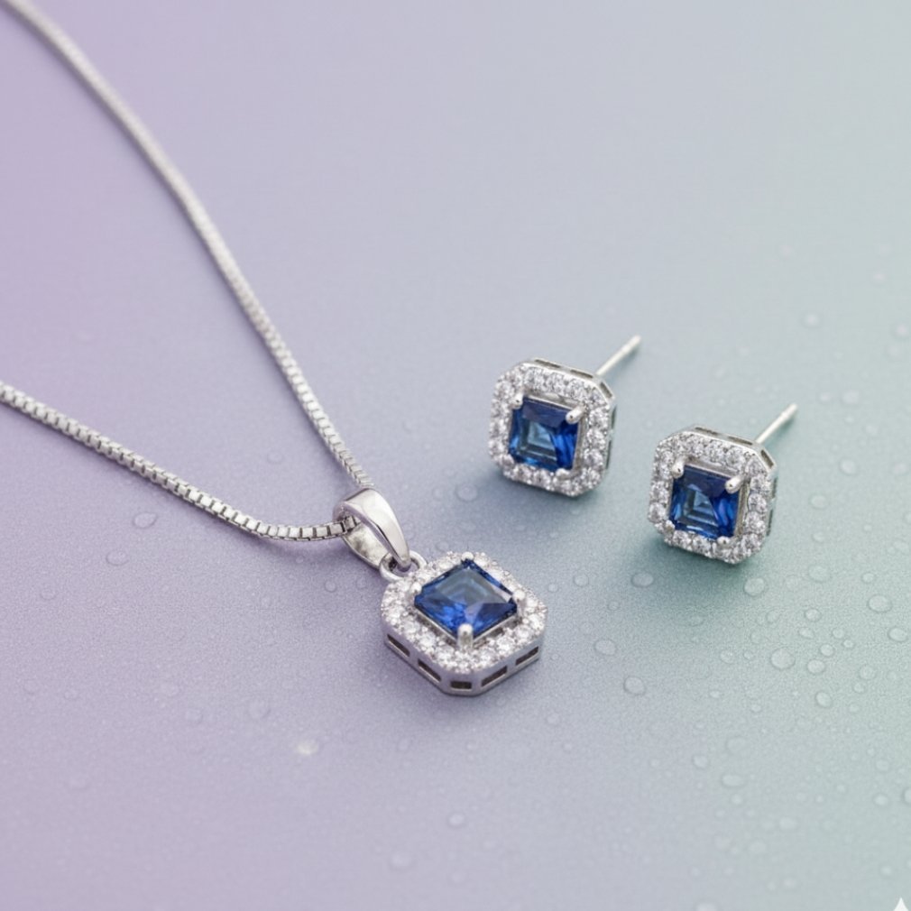 Elegant Sapphire Blue Halo Jewelry Set