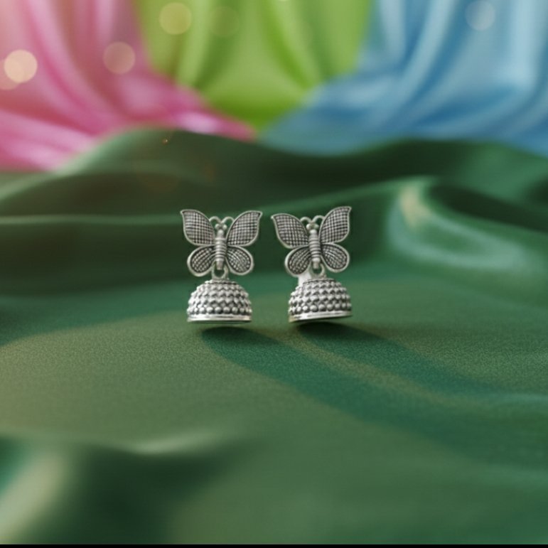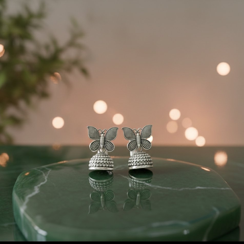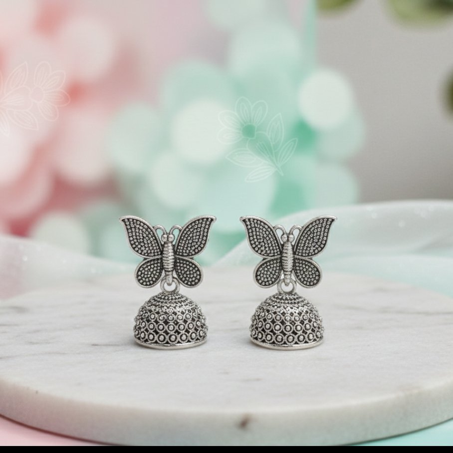 Elevate your ethnic ensemble with these exquisite handcrafted oxidized jhumkas. Featuring a unique and elegant design, these earrings showcase a delicate floral vine motif blooming upward, accented by finely detailed leaves.