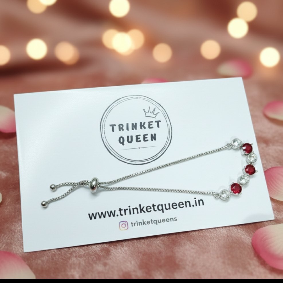 Sparkle with confidence This exquisite adjustable bracelet from Trinket Queen features premium red and white stones set .
