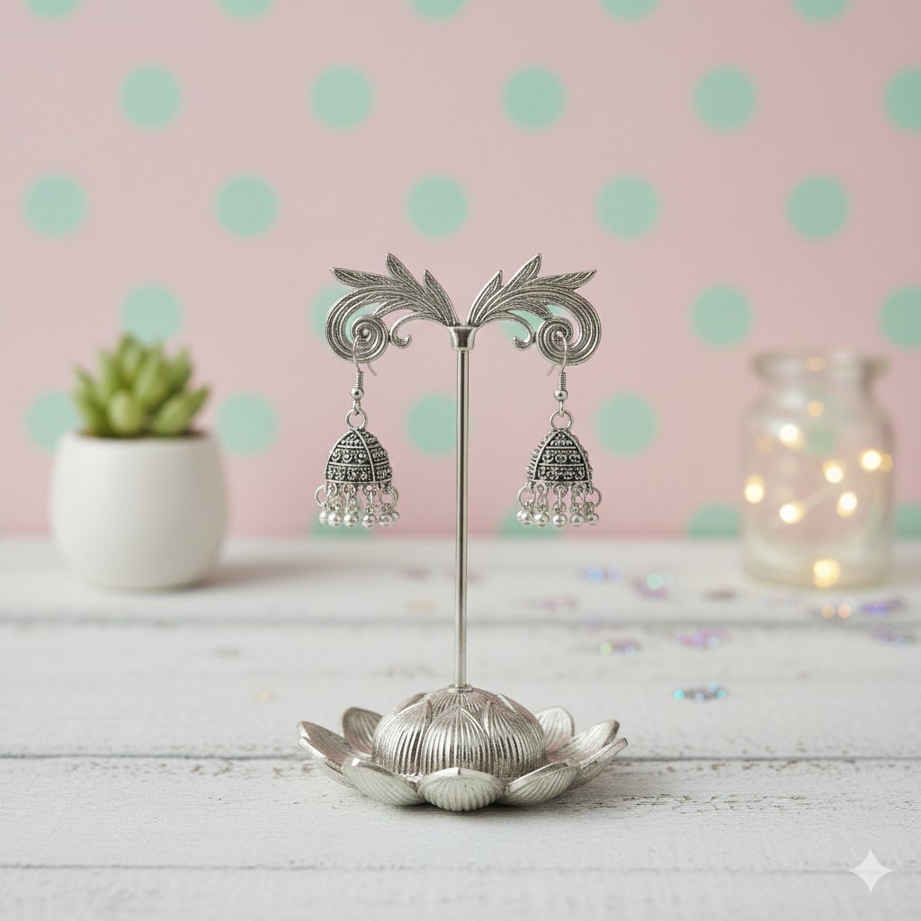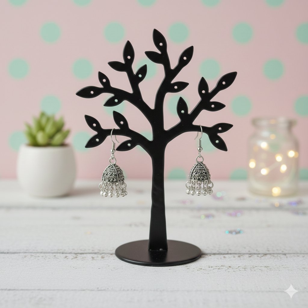 Vintage Style Oxidized Jhumka Earrings