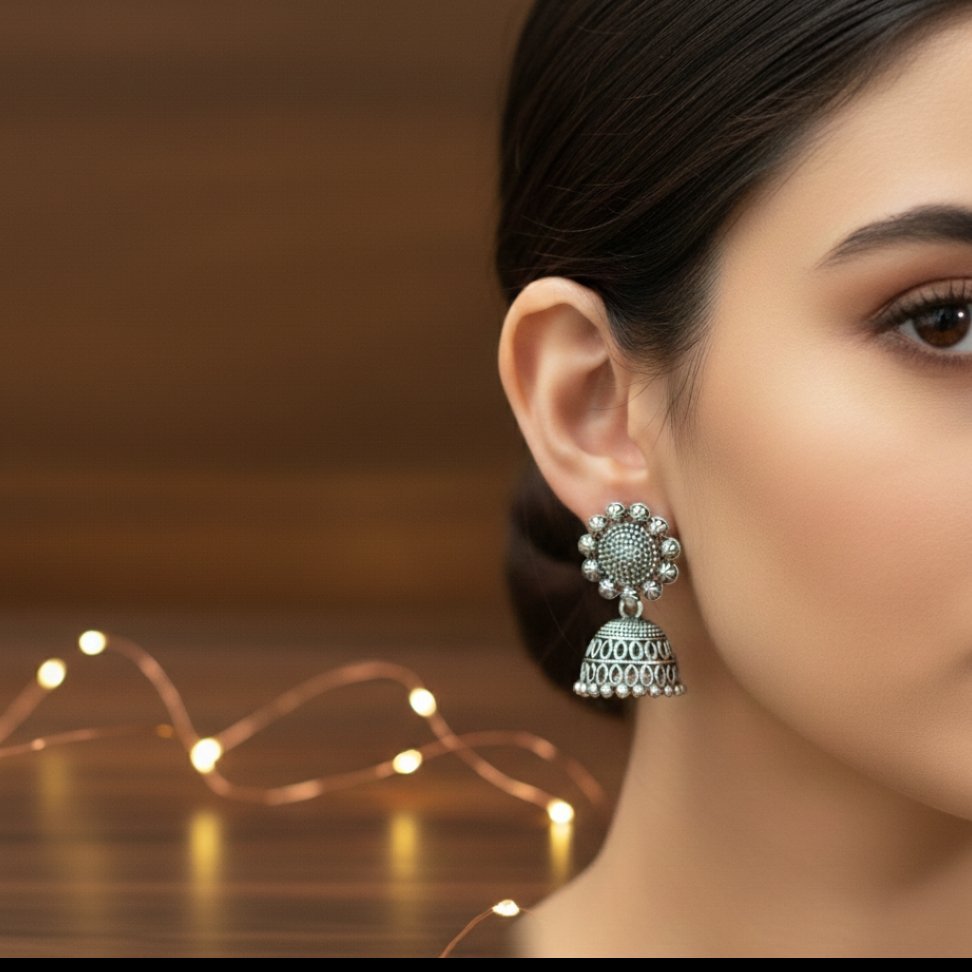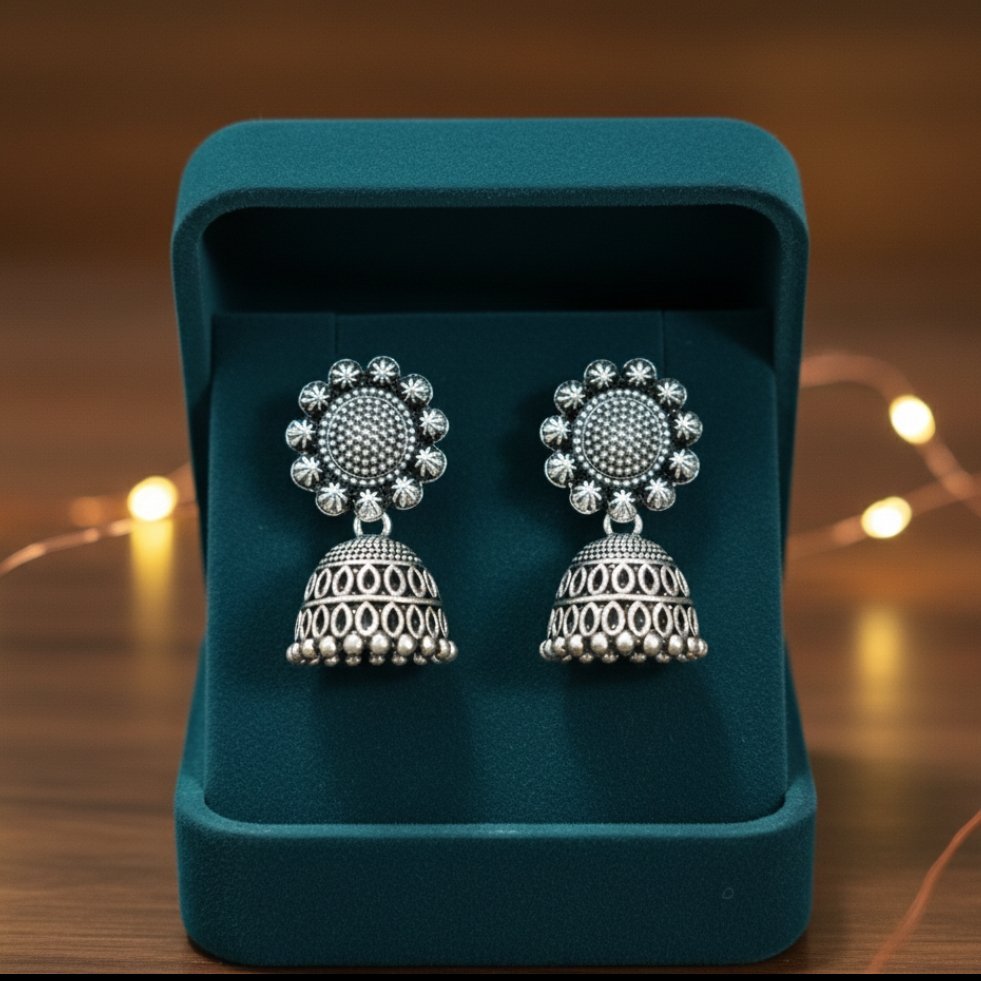 Women’s Oxidized Silver Floral Jhumka Earrings